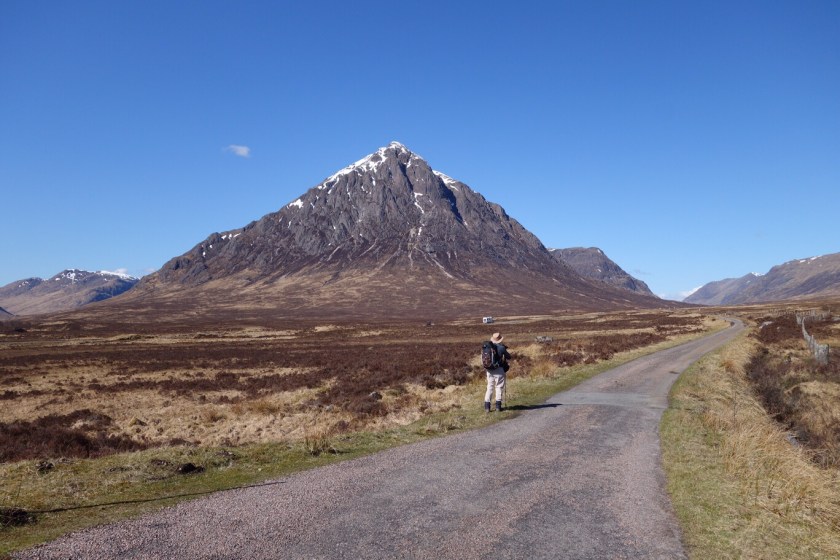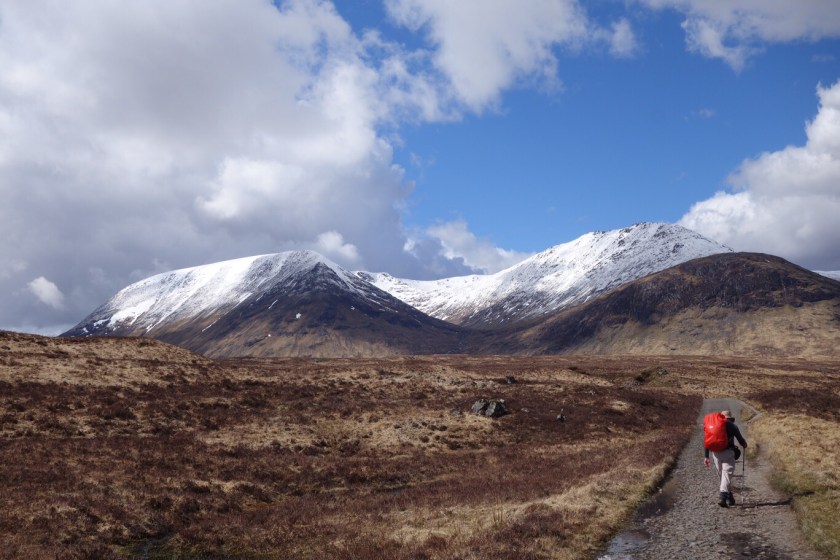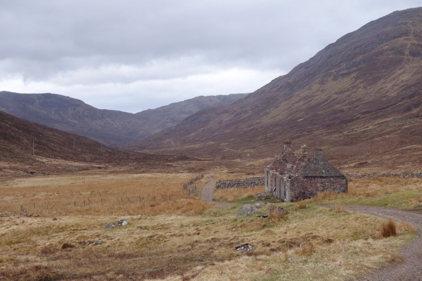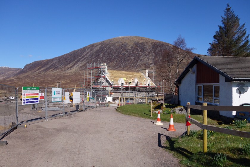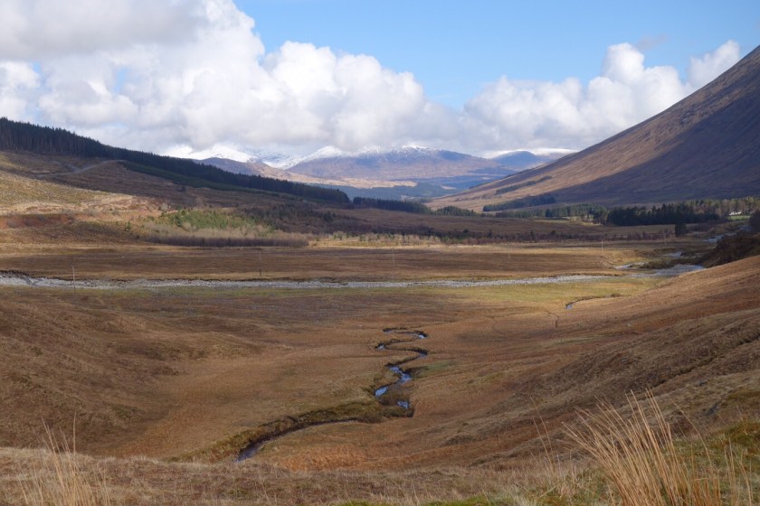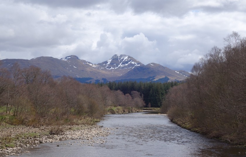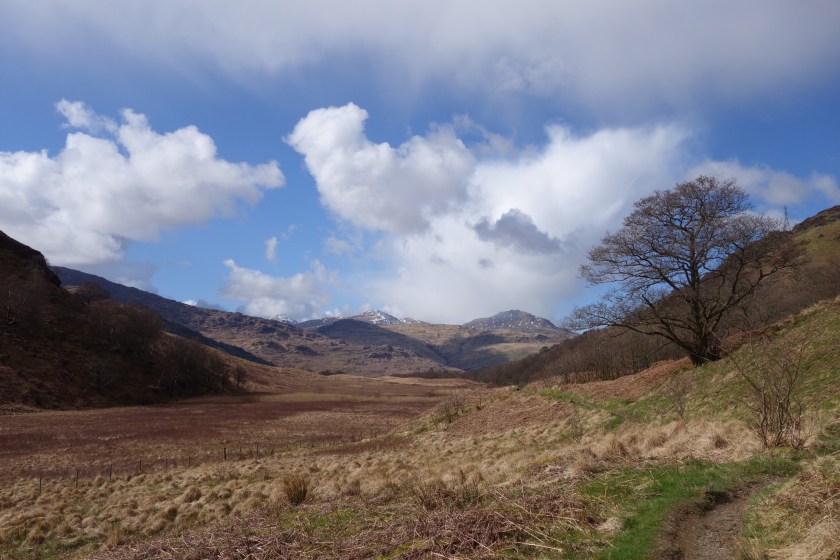 We’ve finished! – but with a bit of a whimper rather than a bang. We knew it was likely to rain this afternoon, and the people in the room above us at our nice B&B started crashing around before 6 in order to make an early start. We set out rather later, with dull skies and a cold easterly wind. Kinlochleven is a funny little town, with some lovely azaleas in neat front gardens between the AstroTurf and the gnomes.