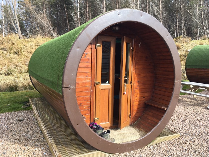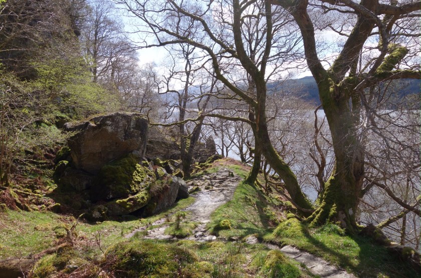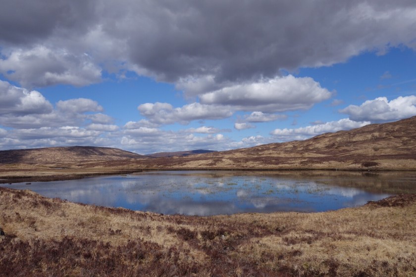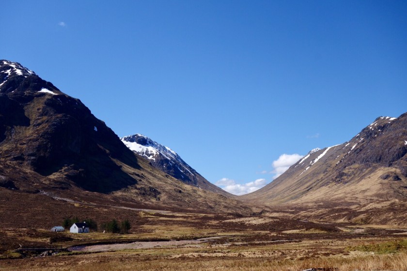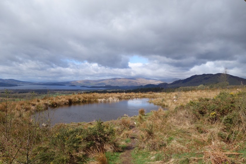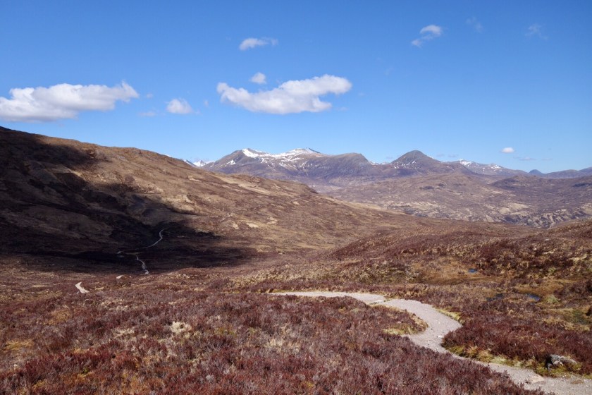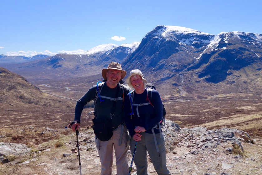 We’ve finished! – but with a bit of a whimper rather than a bang. We knew it was likely to rain this afternoon, and the people in the room above us at our nice B&B started crashing around before 6 in order to make an early start. We set out rather later, with dull skies and a cold easterly wind. Kinlochleven is a funny little town, with some lovely azaleas in neat front gardens between the AstroTurf and the gnomes.